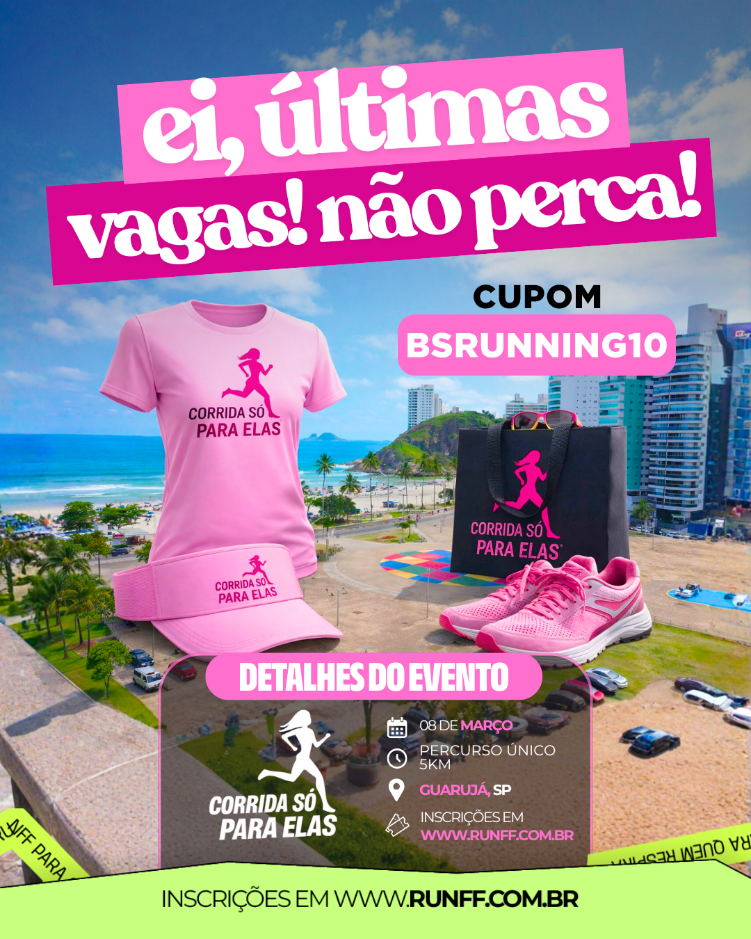 | 08/03/2026 | 7ª CORRIDA SÓ PARA ELAS - GUARUJÁ SP | Guarujá | 5k | - | Ver Mais |